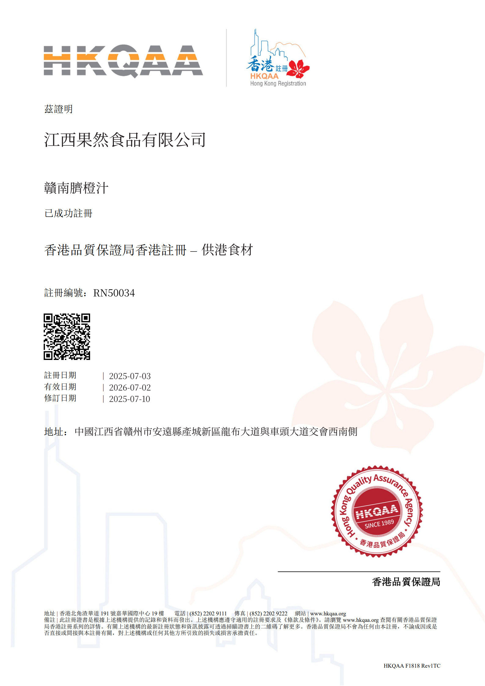 這兩款產品不僅展現了江西特色食材的高品質,更成為「香港註冊」計劃的成功樣本。同時,還有兩家企業正在審核中,即將加入這一行列。隨著更多企業完成註冊,「香港註冊」將進一步擴充品牌矩陣,幫助更多優質食材實現從源頭到香港市場的高效對接。